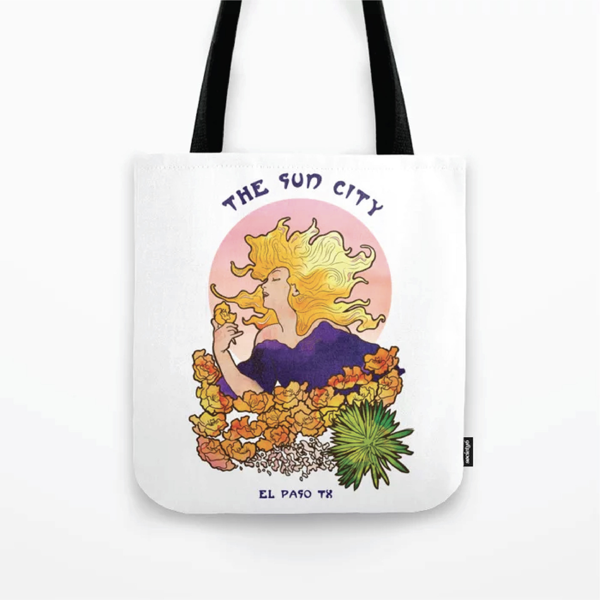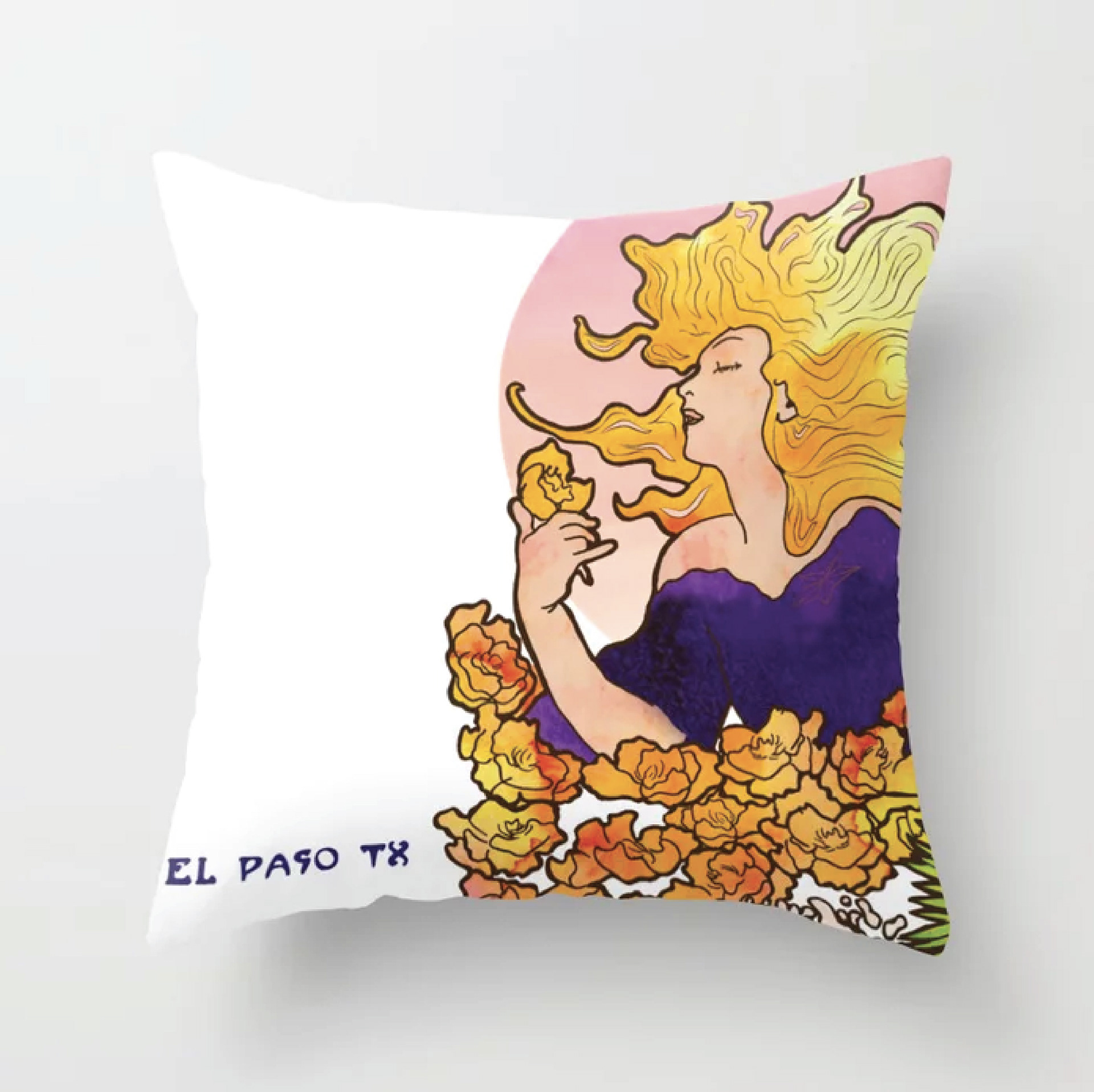Illustration inspired by the Art Nouveau style from artist Alphonse Mucha. Depicting the beautiful sunset scenery of the poppy flowers growing along the Franklin Mountains in El Paso Tx.